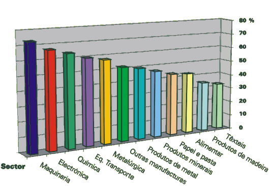 · no entanto, a percentagem de empresas que tinham introduzido inovações dependia claramente de um factor: a dimensão da empresa – quanto maior a dimensão (medida em termos de número de empregados), maior a percentagem de empresas que implementaram inovações; |